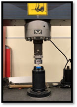 Materials are also compression tested using Instron Universal Testing Machine (Norwood, USA) giving a force-displacement curve, from which compressive strength calculations were obtained by normalising the load in Newtons with the cross sectional area of the specimen.