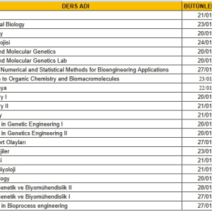 Güz 2024 dönemi, Genetik ve Biyomühendislik bölümü bütünleme programı ektedir.