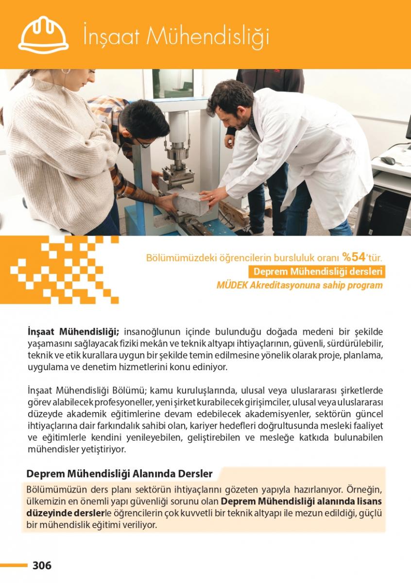 Tüm dünyada insanların yaşam koşullarını sürekli iyileştirme talebi, inşaat sektörüne ve sürekli gelişen mühendislik hizmetlerine olan ihtiyacın hep gündemde olmasını sağlamaktadır. Önüne geçilemez hızla ilerleyen böyle bir sektörde inşaat mühendisi ihtiyaçlarını karşılamak üzere kurulan İnşaat Mühendisliği Bölümlerinde, dört yıllık lisans öğrenimi verilmektedir.